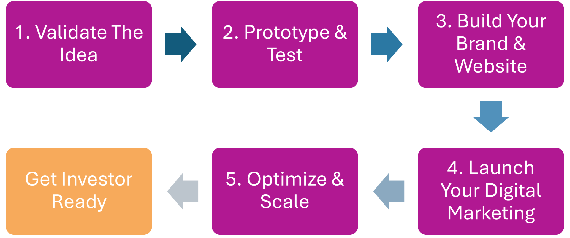 TheSparkr “Gate” System are milestone-driven sessions, each with a key goal, deliverables, and an outcome designed to de-risk your business, accelerate success, and prepare you to be truly investor-ready.